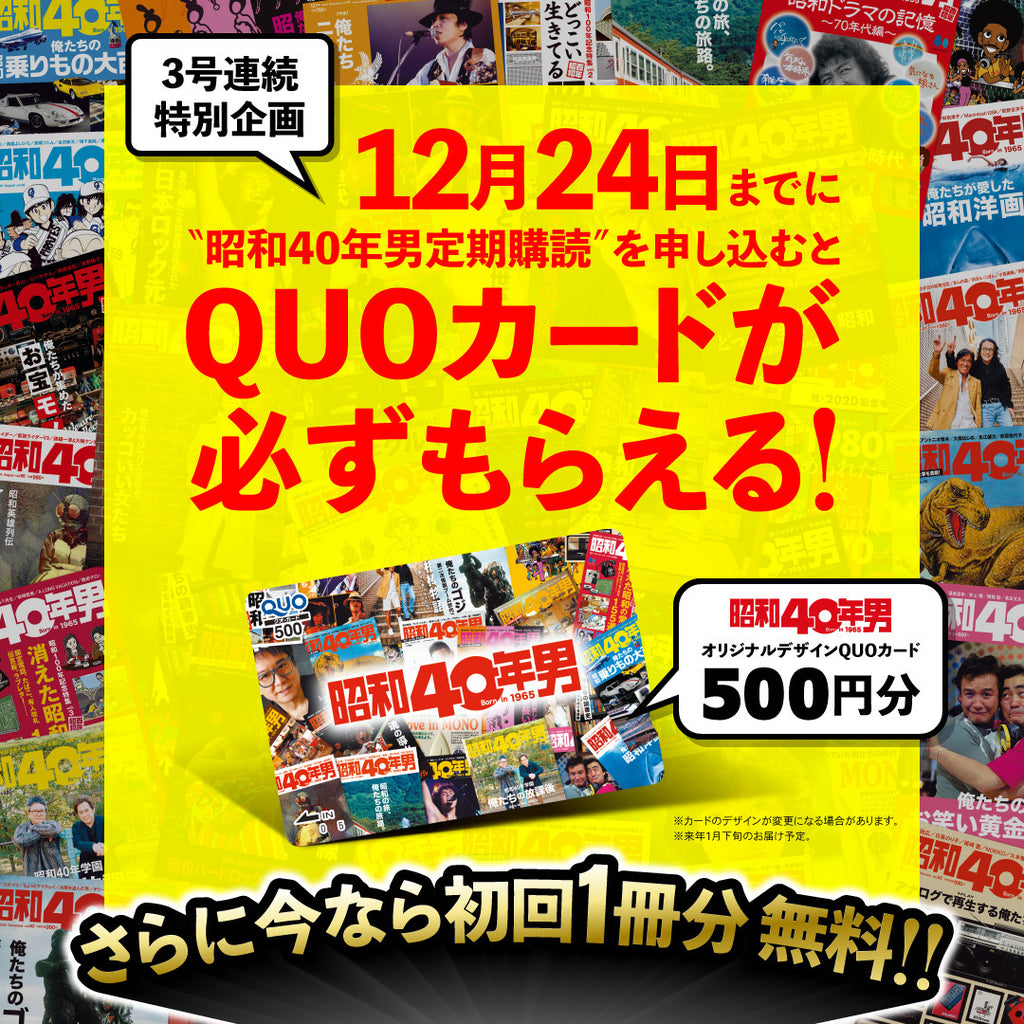 ・12月24日(水)までのお申し込みで、1月発売予定の「昭和40年男 2026年2月号」より毎号お届けいたします。